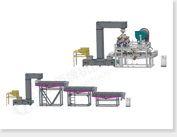 分級單元:上料斗,提升機和分級篩(數量取決于原料情況)。