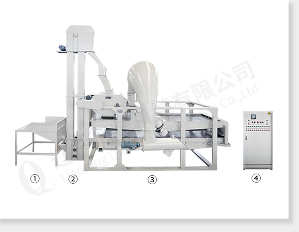 приёмный бункер    ковшовый элеватор    главная машина (шелушитель, вибросито для удаления шелухии вибросито для сепарации нелущённой семечки и ядра) электрический управляющий шкаф